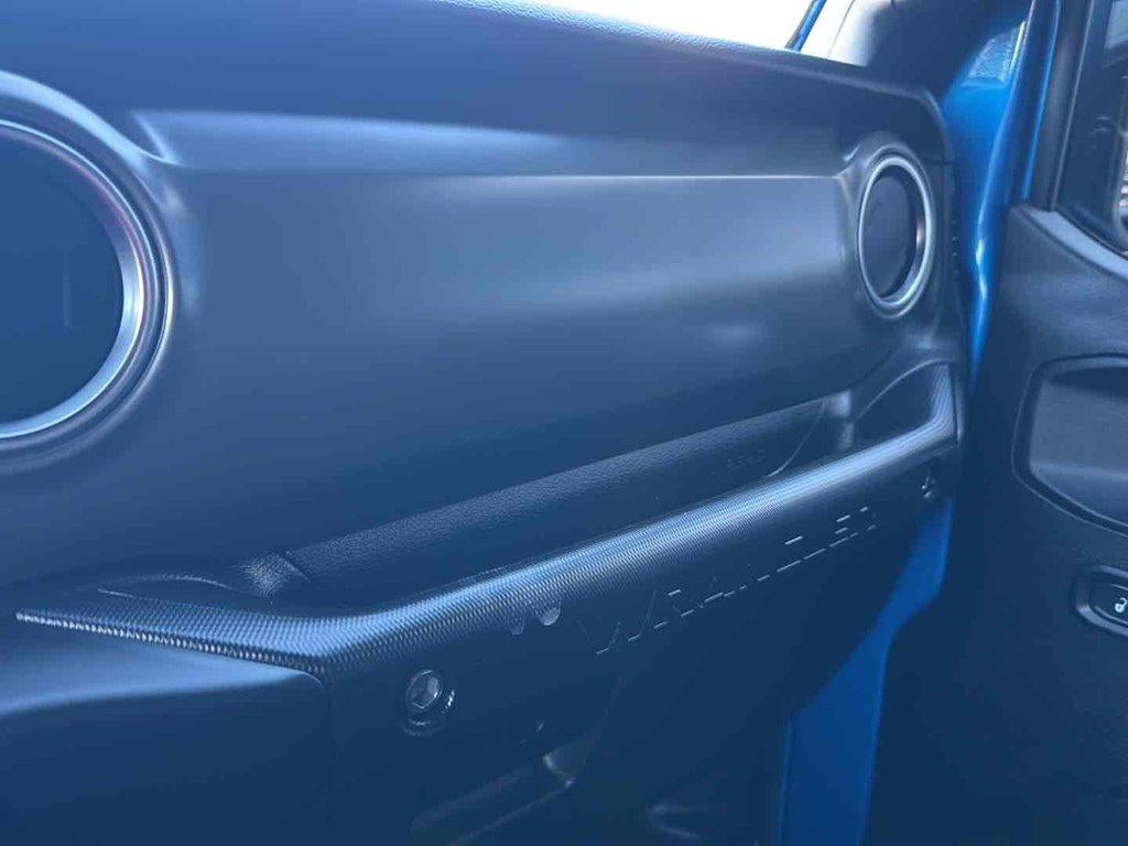 Draped in stunning Hydro Blue Pearlcoat, this Wrangler 4xe turns heads on and off the trail. The Premium Black Sunrider Soft Top offers the freedom to embrace the elements, while the black leather-trimmed bucket seats provide luxurious comfort for all your journeys.